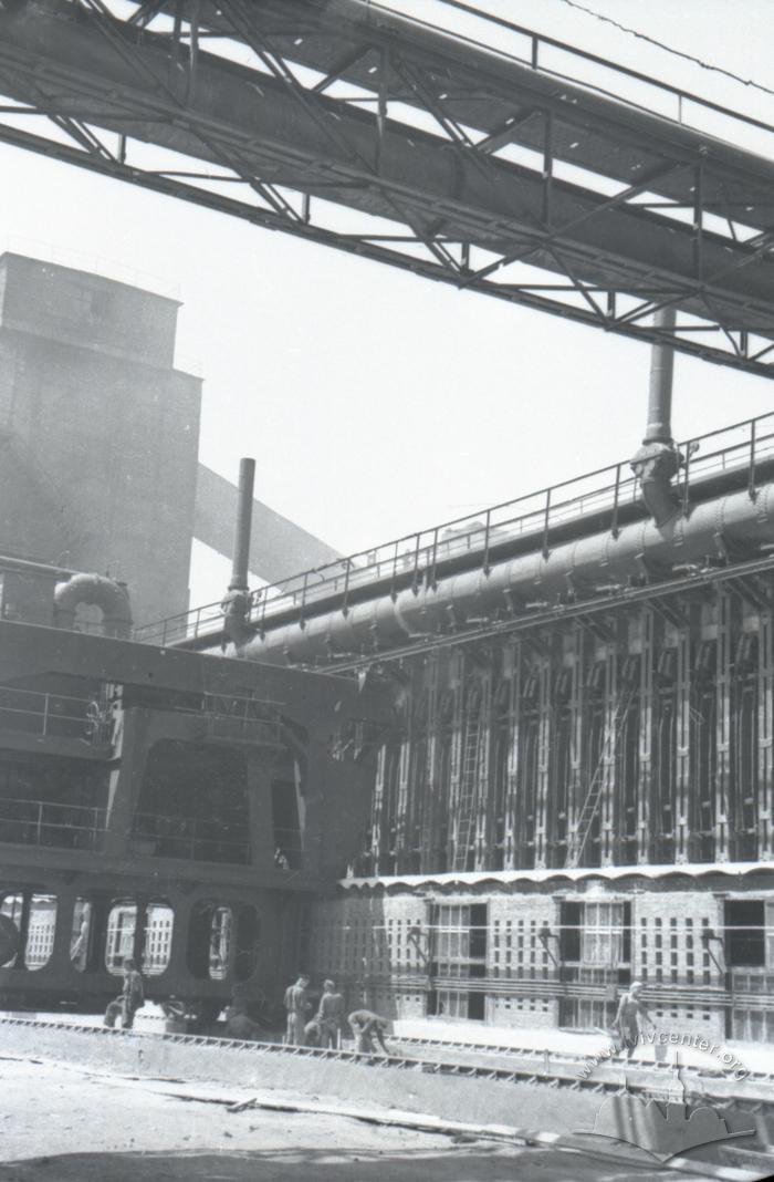 Coke-oven battery No. 3 and the rally on the occasion of the launch, July 17, 1948.