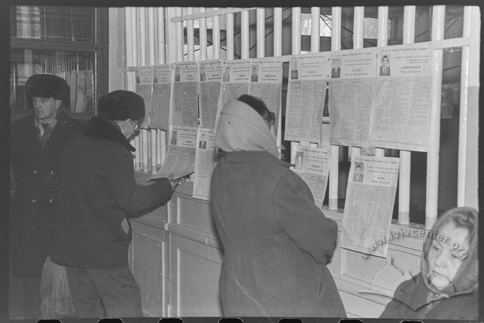 Члени бригади шахтобудівельників ШБУ № 12, яким керував Галей Микола Якович, перед спуском до шахти ID: 44900 Місце: Покровськ